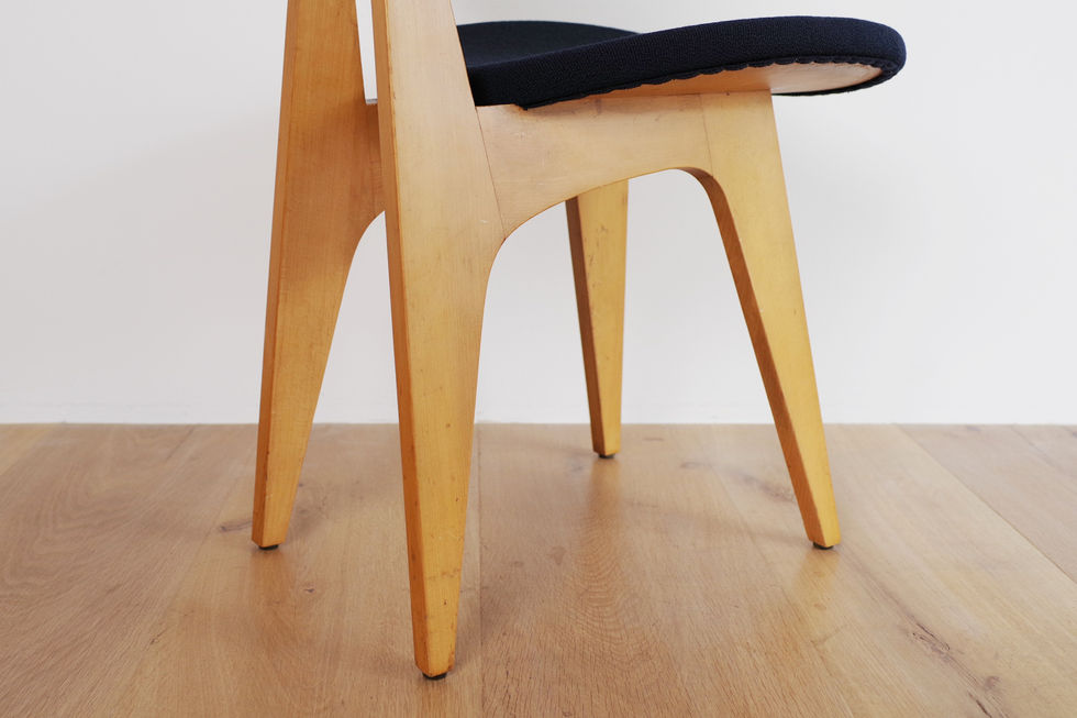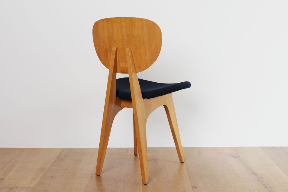 1953年に坂倉準三率いる坂倉準三建築研究所がデザインした天童木工社の小イス(model 5013)です。1990年製のセミヴィンテージコンディション、大変貴重な座面のみファブリック張りのモデルになります。