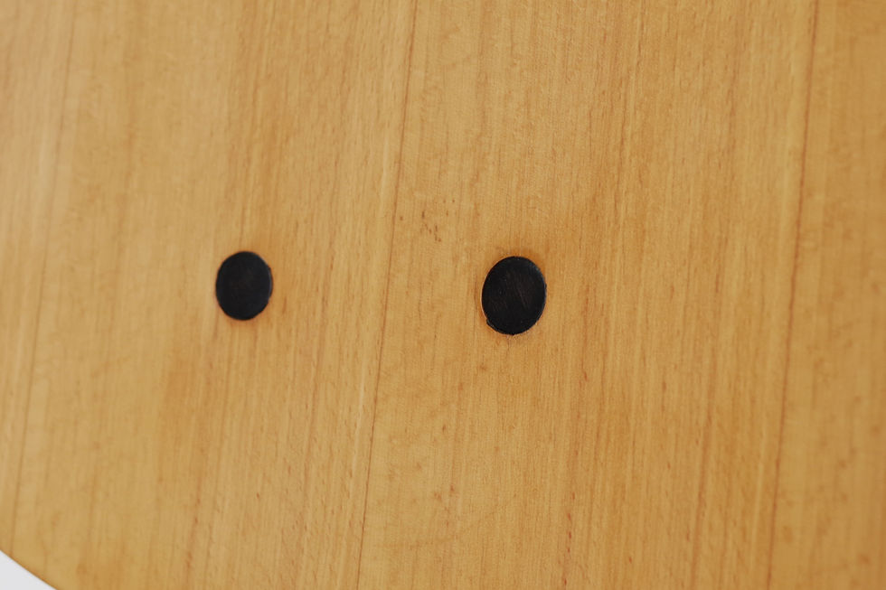 今回入荷した小イス(model 5013)は1990年に竣工した日本女子大学・西生田キャンパスの図書館のために天童木工社で特注生産され納められた個体になります。2019年には同校の卒業生でもある妹島和世氏の設計による新図書館が目白キャンパスに完成しますが、「いままで先輩たちが使ってきた家具を未来に繋げていければ」という妹島氏の提案により西生田キャンパスよりそのまま移設され現在まで使われてきました。この度その一部が家具入れ替えにより放出されることになり、BUILDINGでお預かりして販売させていただくことになりました。