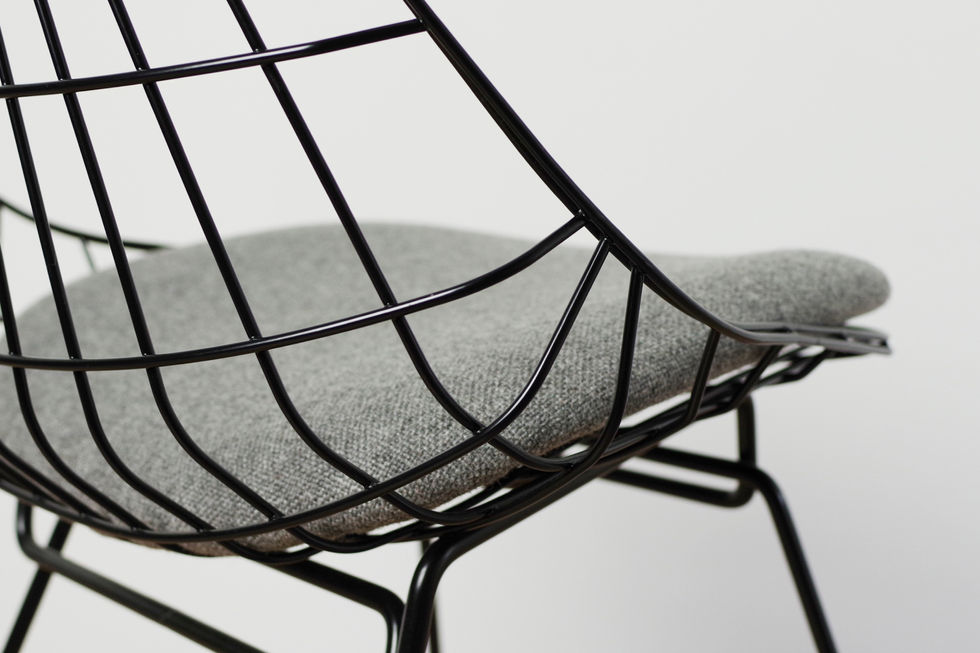 1945年から30年以上もの間、オランダ・UMS-Pastoe社のデザインチームを率いたケース・ブラークマン。細いワイヤーをグリッド状に張り巡らせエッジを2本のワイヤーで挟み込む構造は、イームズからの影響も垣間見えるデザインです。お尻をすっぽりと包み込むようなバスケット状の座面で座り心地も快適です。シートパッドは簡単に取り外すこともできます。