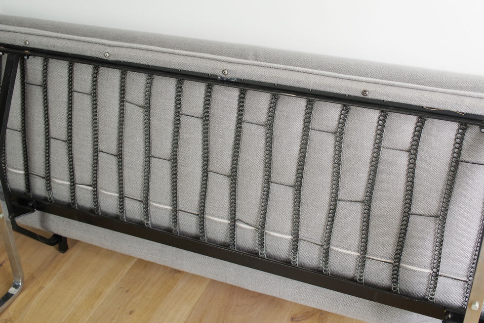 場所を取らない「コンパクトさ」と、手鏡の「コンパクトのように」折り畳みができることからネーミングされたソファ。イームズ夫妻が自宅用にデザインしたソファが原型となっていますが、現代の生活様式にも非常にマッチした機能的な ソファです。スチール製のベースと3枚のクッションパネルで構成され、面で体を支える構造になっています。座面下にはスプリングが敷かれ、座り心地も非常に良いものです。