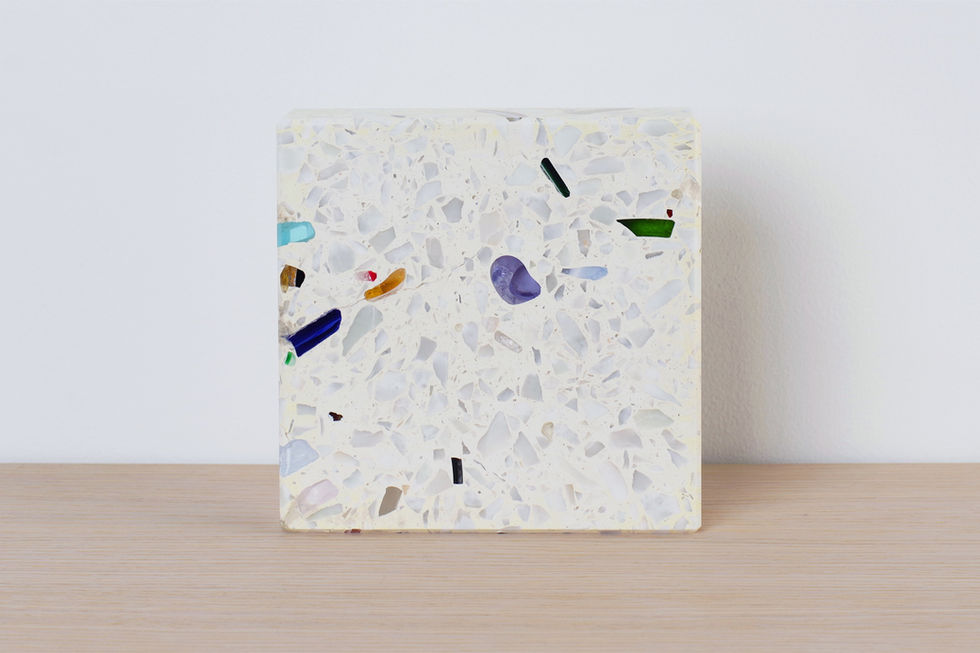 ガラスやアクリル樹脂、建築用金属素材を用いてデザインの可能性を探求し、日本のポストモダンを牽引した倉俣。色とりどりの廃ガラスを混ぜ込んだテラゾー(人工大理石)は、1983年に倉俣が内装デザインを手掛けた「ISSEY MIYAKE 松屋銀座本店」で空間全体に使用され一躍脚光を浴び、同年にはイシマル社から家具シリーズも発売されました。現在もなおスターピースは倉俣の代表作となっています。