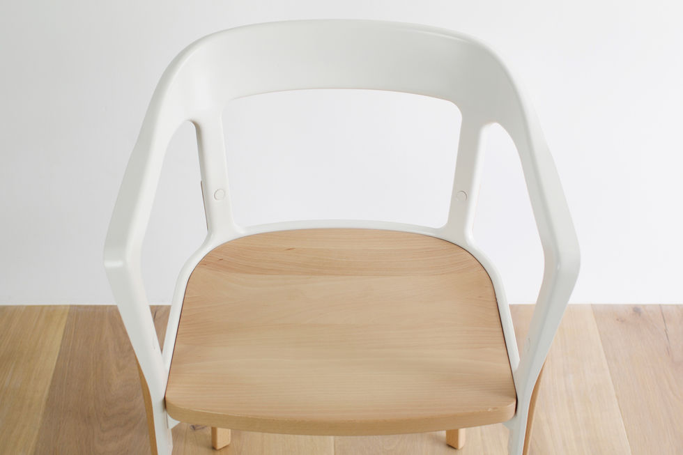 フランス人デザイナー、ロナン&エルワン・ブルレック兄弟がデザインしたスチールウッドチェアです。ホワイト×ビーチ材のモデルになります。