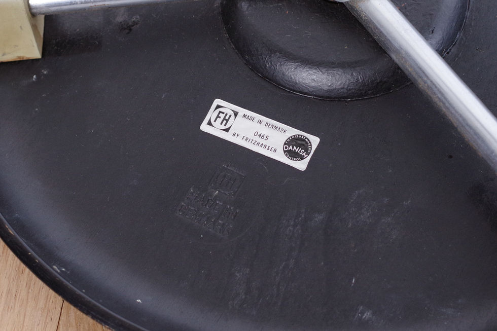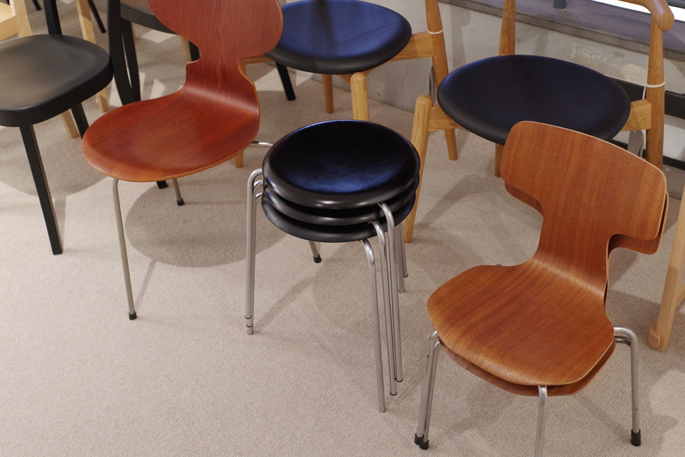 アルネ・ヤコブセンがデザインしたフリッツ・ハンセン社のスツール3170です。1965年製のヴィンテージ品、ブラック座面の3本脚のモデルになります。