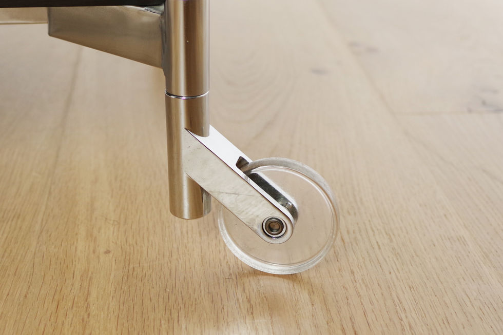 ホテルのロビーでポーターが運ぶ荷物用ワゴンからインスピレーションを得てデザインされたハンガーラック。ポールの接合部からキャスターに至るまで非常に精巧に設計されていることが分かります。また、このW900サイズのドロワー付きモデルはすでに生産終了となっており、現在では入手困難なモデルとなっています。