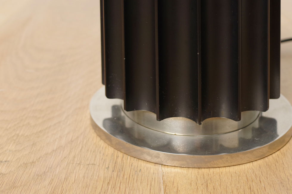 大きなガラスボウルに載せた白いアルミ板に光源を反射・拡散させることで、非常に雰囲気のある光を作り出す間接照明。ボウルと反射板の角度によって壁面に投影される光と影がとても印象的です。現行品は光源が組込式LEDになり、サイズを小さくしたスモールモデルも発売されていますが、こちらは62年にフロス社から発売された当初のオリジナル仕様のモデルになります。