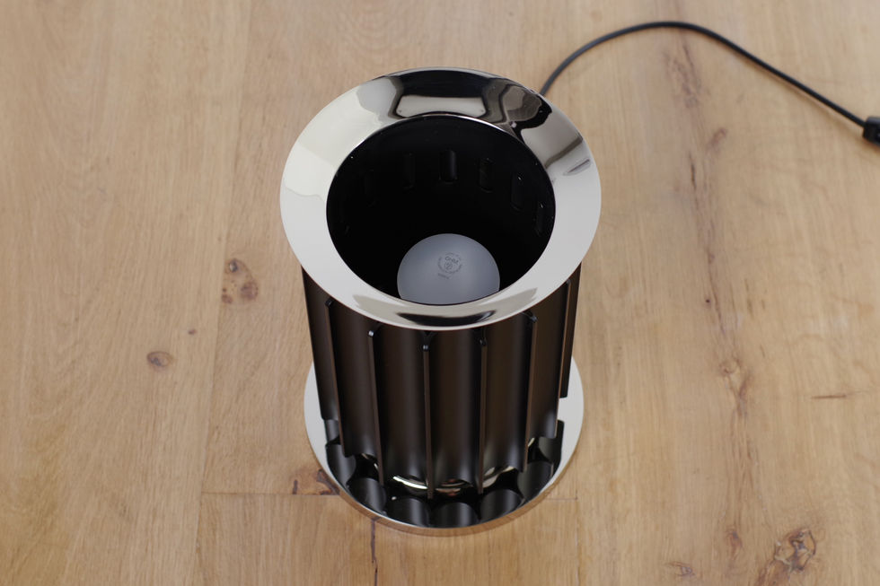 大きなガラス ボウルに載せた白いアルミ板に光源を反射・拡散させることで、非常に雰囲気のある光を作り出す間接照明。ボウルと反射板の角度によって壁面に投影される光と影がとても印象的です。現行品は光源が組込式LEDになりサイズを小さくしたスモールモデルも発売されていますが、こちらは62年にフロス社から発売された当初のオリジナル仕様のモデルになります。