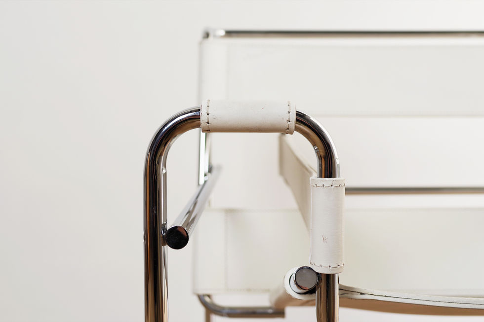 1925年にデザインされたマルセル・ブロイヤーの代表作『ワシリーチェア』です。イタリア・Gavina社で生産されたヴィンテージ品(1970年代製)、ホワイトカウハイドレザーのモデルなります。